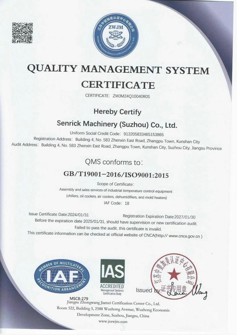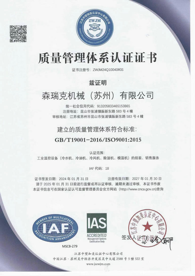 森瑞克機械(蘇州)有限公司(簡稱:SENRICK)是一家中外合作性企業(yè),引進技術,專注于工業(yè)制冷設備,工業(yè)溫控設備,非標制冷設備,集激光,化工,真空設備輔機等集研發(fā)、生產、銷售、服務于一體的的現代化科技企業(yè)。公司擁有完善的制造設備,先進的檢測系統(tǒng),獨立的加工、生產工藝,一支開拓創(chuàng)新專業(yè)有素的技術人才團隊,以及全面的質量控制體系,為產品質量的不斷優(yōu)化提供了強大的保障,以確保滿足不同市場的各種需求。經過多年的努力企業(yè)相繼研發(fā)生產出了工業(yè)冷水機,工業(yè)冷風機,工業(yè)冷油機,工業(yè)機,低溫冷水機,低溫冷風機,低溫冷油機,螺桿式冷水機...